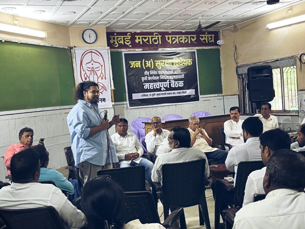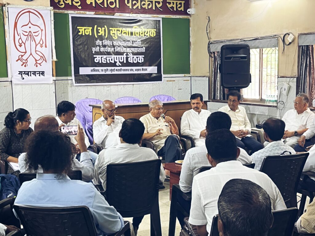 मुंबई, 19 जुलै 2025 — जनसुरक्षा विधेयकाच्या विरोधात राज्यातील डाव्या, पुरोगामी आणि सामाजिक न्यायवादी संघटना एकत्र येत एक व्यापक आंदोलनाची आखणी केली आहे. या लढ्याचे नेतृत्व वंचित बहुजन आघाडीचे नेते प्रकाश आंबेडकर आणि समाजवादी नेते कपिल पाटील यांनी घेतले असून, आज मुंबई मराठी पत्रकार संघात पार पडलेल्या महत्त्वपूर्ण बैठकीत राज्यभर जनजागृतीसाठी कार्यशाळा घेण्याचा निर्णय घेण्यात आला.