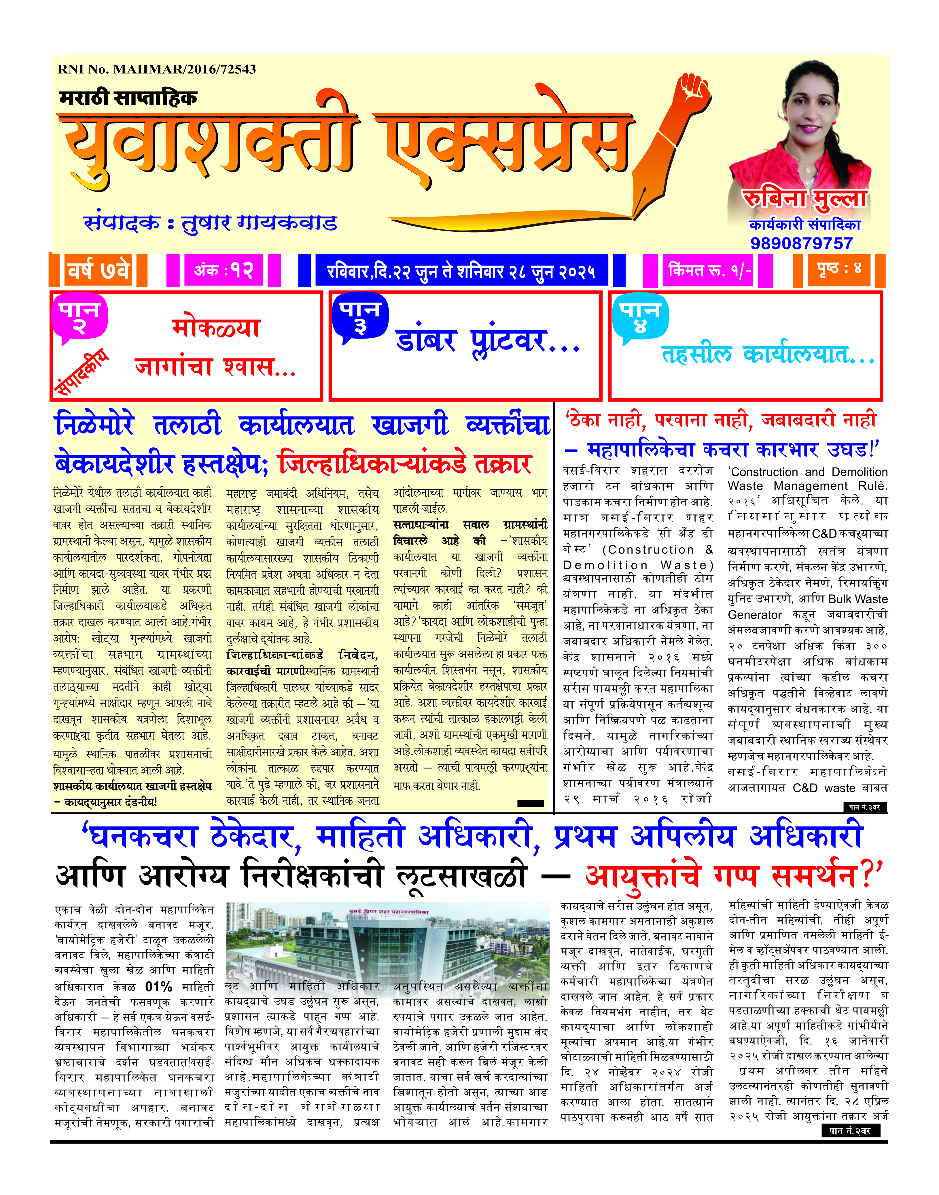 download issue 12 finalissue 12 final Post navigation युवाशक्ति एक्सप्रेस वर्ष ७ वे अंक ११ युवाशक्ती एक्सप्रेस वर्ष ७ वे अंक १३
