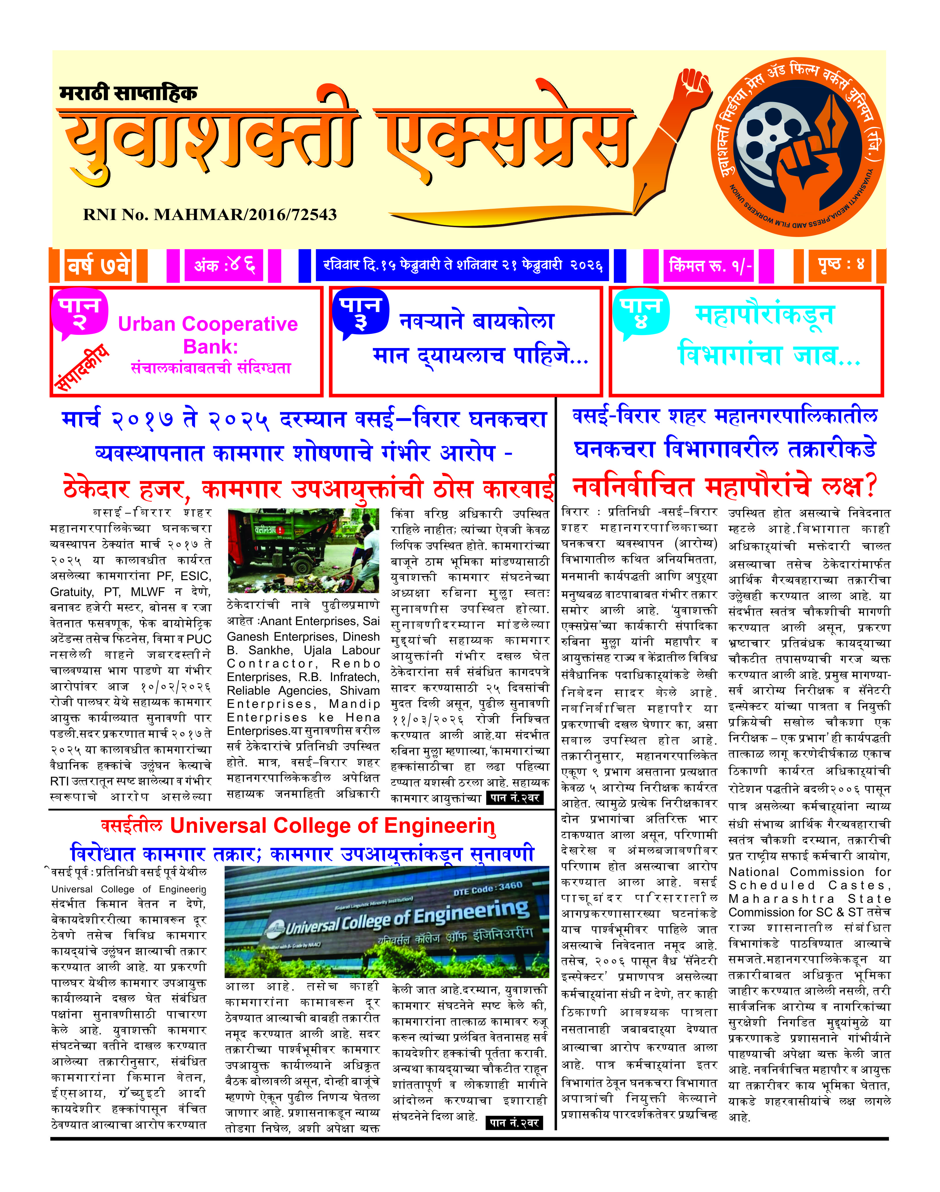 युवाशक्ती एक्सप्रेस वर्ष ७ वे अंक ४६