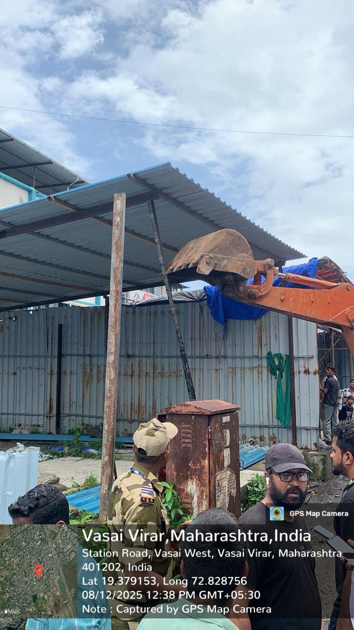 वसई, १३ ऑगस्ट २०२५ — वसई-विरार शहर महानगरपालिकेने अनधिकृत बांधकामांविरुद्ध कठोर भूमिका घेतली असून, नवघर-माणिकपूर प्रभागातील केटी व्हिजन मल्टीप्लेक्स शेजारील पंचाल नगर परिसरातील ९ अनधिकृत गाळ्यांवर कारवाई करून सुमारे ५,४०० चौ.फुट क्षेत्रफळाचे बांधकाम हटवण्यात आले.