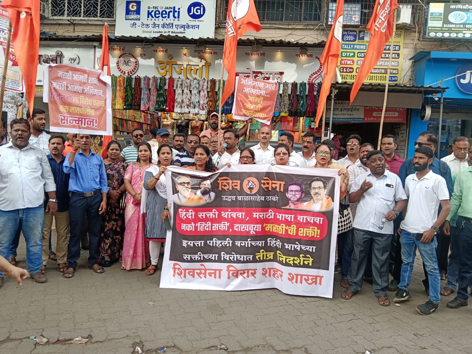 राज्यातील शालेय शिक्षणात इयत्ता पहिल्यापासून हिंदी भाषा सक्तीने लागू करण्याच्या निर्णयाविरोधात शिवसेना (उद्धव बाळासाहेब ठाकरे) पक्षाच्या वतीने रविवार दिनांक २९ जून २०२५ रोजी विरार पूर्व रेल्वे स्थानकाबाहेर जोरदार निदर्शने करण्यात आली.